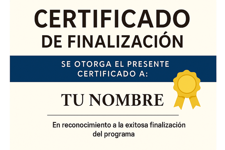 Reconocemos tu esfuerzo y dedicación. Al completar el curso, recibirás un certificado personalizado con tu nombre, que te llegará por correo electrónico para que puedas descargarlo e imprimirlo y demostrar tu logro como emprendedora dulce.